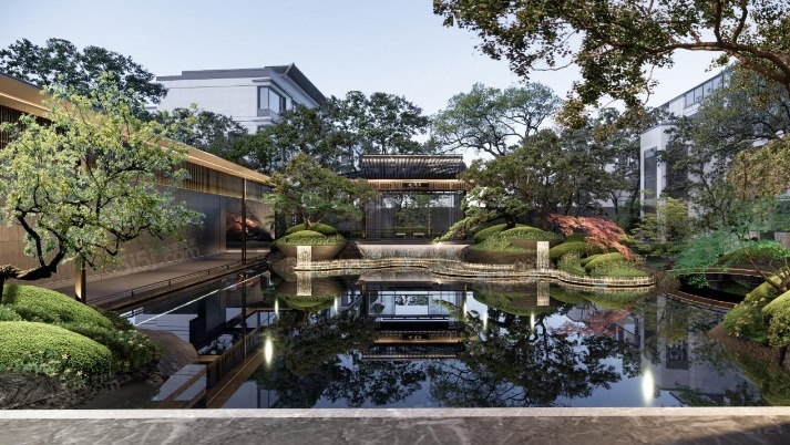 宋风园林三进八景,由超巨迎宾广场、墅区大堂及叠水景观,组成三重归家礼序空间