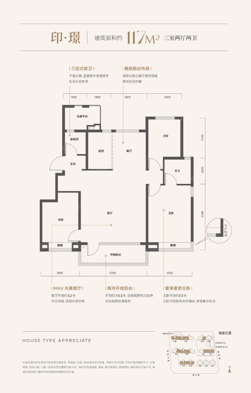 【布局】 南向开敞阳台5.3米,主卧开间3.5米