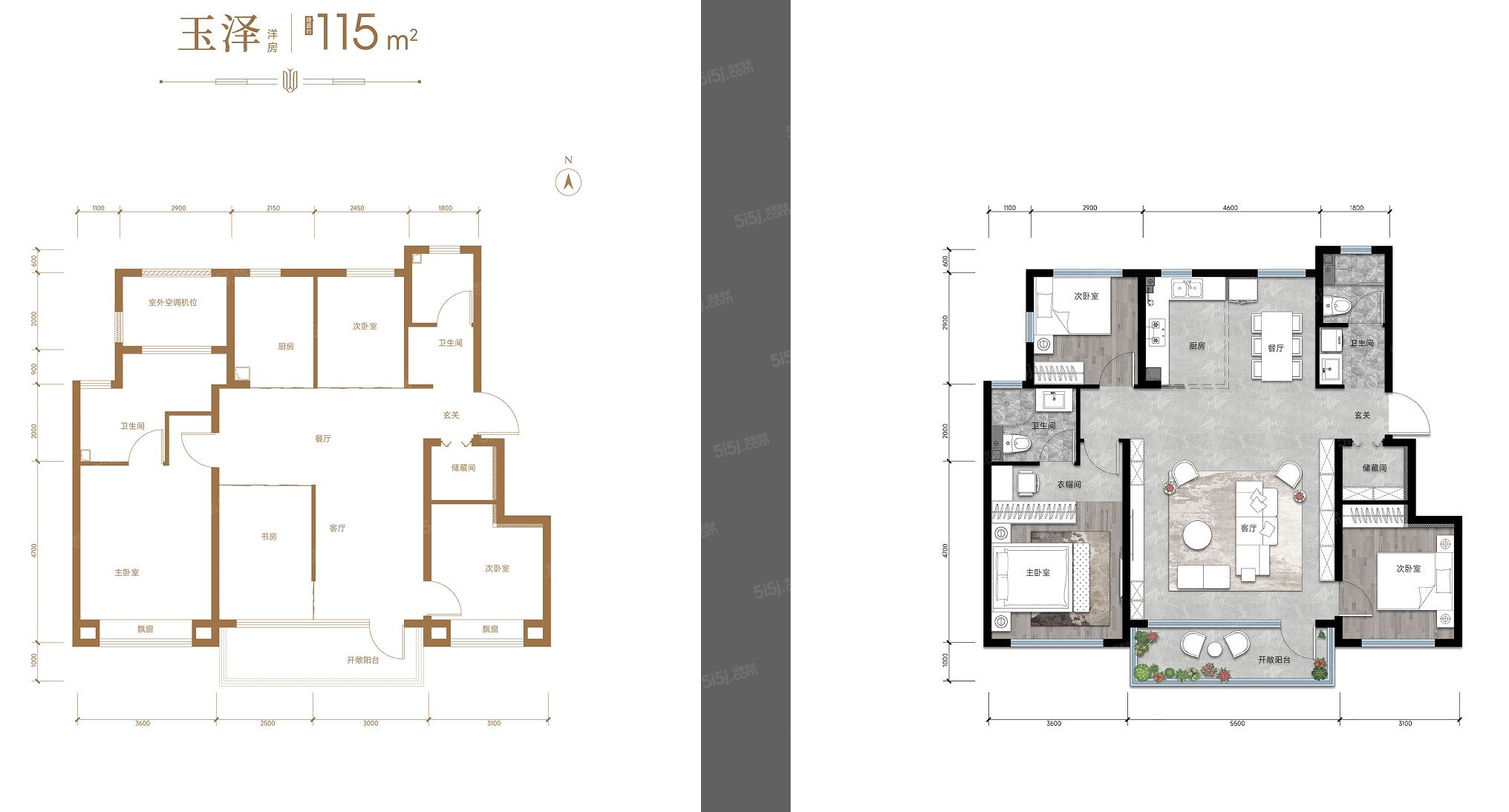 【布局】 5.5m 开间 三面朝阳 开敞阳台 南北通透